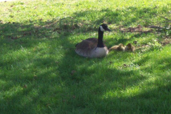 به خاطر دریاچهای که نزدیک خونهمون هست کلی هم غاز داریم که دایم در حال چریدن هستند! یکیشون بچهدار شده و خیلی بچههای نازی داره که همش پشت سرش بدو بدو میکنن.