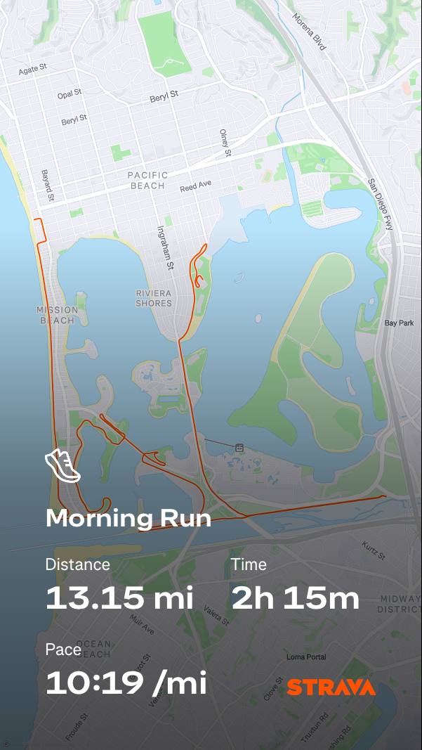 این مسابقه (Pacific Beach Half Marathon ) رو پارسال فهمیدم وجود داره و همین طوری با یکی از دوستام ثبت نام کردیم. اینه که با تمرین‌های گروه‌مون که مسابقه‌شون یه ماه دیگه است نمی‌خورد. و باعث شد بعضی از تمرین‌های بلند رو مجبور شیم منقطع انجام بدیم. مثلا سه مایل (پنج کیلومتر) رو اول می‌رفتیم بعد با گروه هشت مایل (۱۲.۵ کیلومتر) دیگه. ولی فکر نمی‌کنم دلیل این بود چون اصلا به ۳ مایل نرسیده من انرژیم تموم شده بود. یه دلیل دیگه شاید این بود که مسابقه قرار بود شنبه باشه و من وقتی بلیط رو خریدم فکر کردم به به مسابقه رو داده‌ام. و می‌رم کنسرت. ولی بعد یهو مسابقه رو انداختن یکشنبه صبح. اینه که تازه من بعد از کنسرت ساعت ۸ اینا شام خوردم. و یه احتمال دیگه هم اینکه سپهر سرما خورده. گرچه که بیچاره رو کردم تو اتاقش که من ازش نگیرم و هنوز هم نگرفته‌ام ولی بالاخره شام و ناهار رو با هم خوردیم و ممکنه بدنم داشته مبارزه می‌کرده که نگیره. والبته شایدم هم هیچ کدوم اینا و فقط شانس.