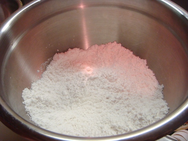 شکر و آرد رو تو یه کاسه مخلوط کنید و کنار بگذارید البته اگه خیلی پایهاید خوبه که الک کنید. من هیچوقت نمیکنم چون حوصله ندارم!